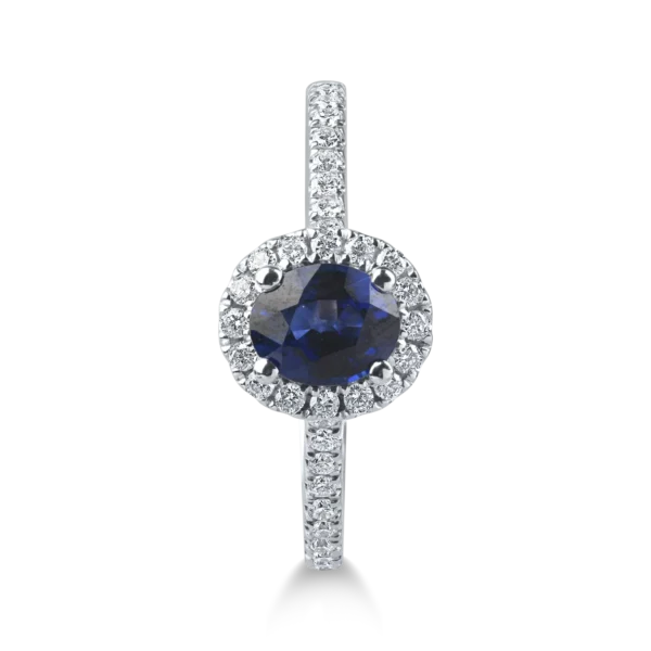 Inel din aur alb cu un safir oval de 0.8ct si diamante de 0.2ct