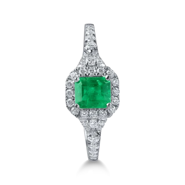 Inel din aur alb cu un smarald rectangular de 0.4ct si diamante pave de 0.3ct