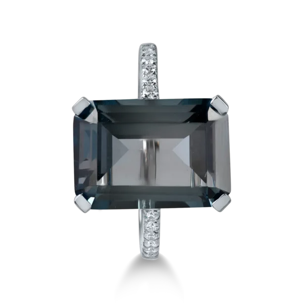 Inel din aur alb cu un topaz London blue octogonal de 8.46ct si diamante de 0.1ct