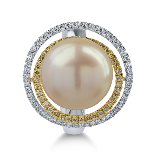 Inel din aur alb-galben cu diamante de 0.4ct si safire galbene octogonale de 0.5ct