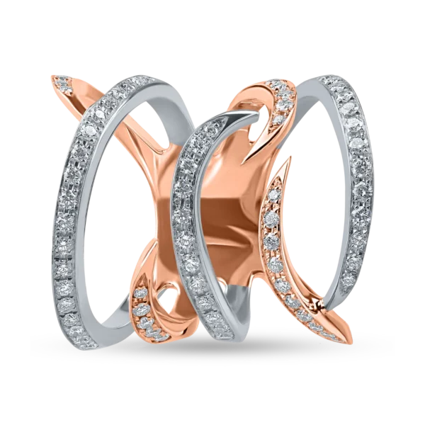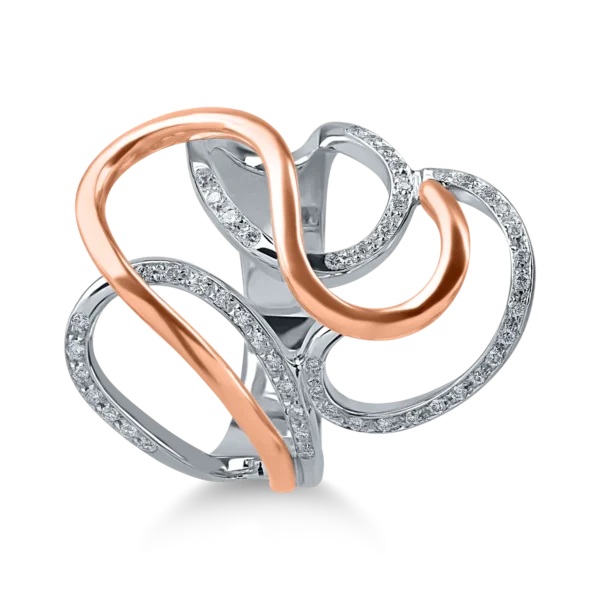 Inel din aur alb-roz cu diamante baguette de 0.4ct