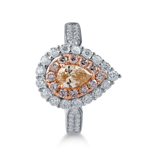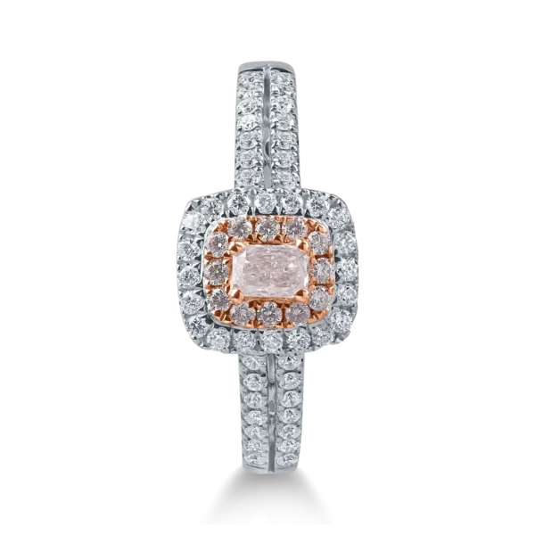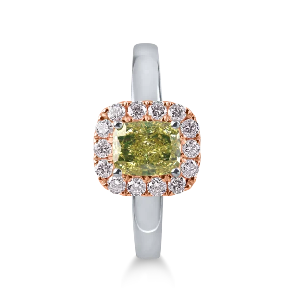 Inel din aur alb-roz cu diamant verde cushion si diamante roz de 1.3ct