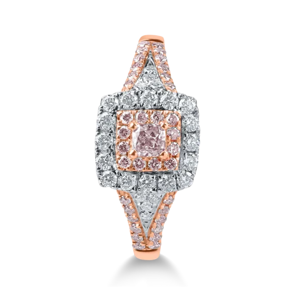 Inel din aur alb-roz cu diamante roz si incolore de 1.2ct