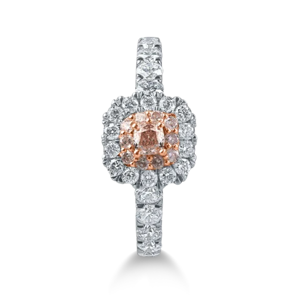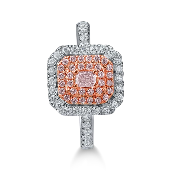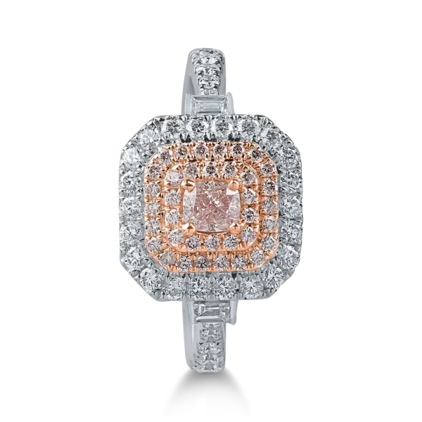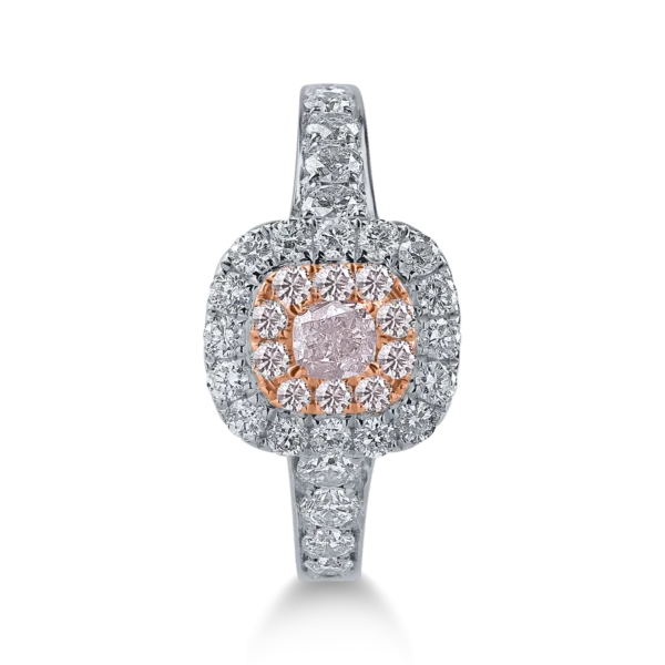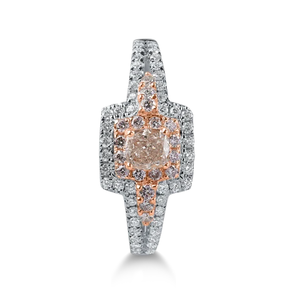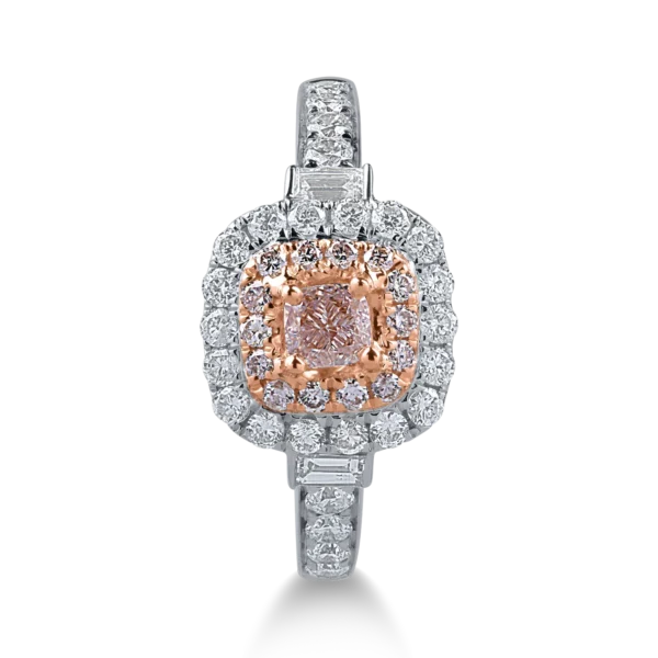 Inel din aur alb-roz cu diamante roz cushion si rotunde si diamante incolore de 0.69ct