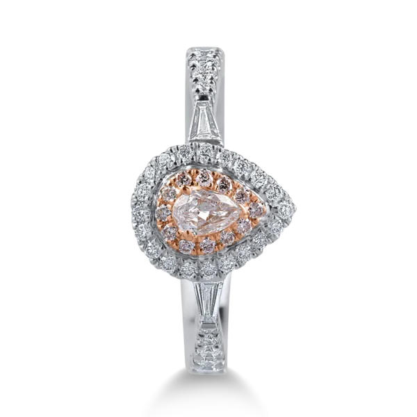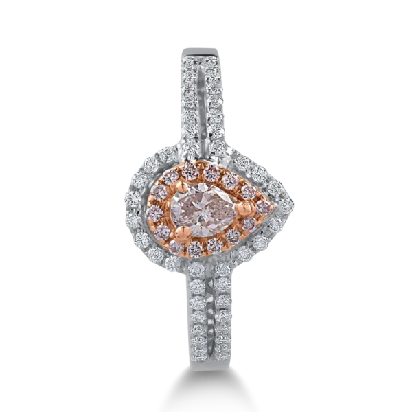 Inel din aur alb-roz cu diamante roz pear si rotunde de 0.29ct si diamante transparente de 0.24ct