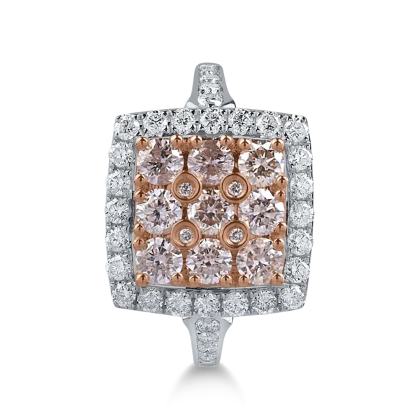 Inel din aur alb-roz cu diamante roz si incolore de 1.7ct