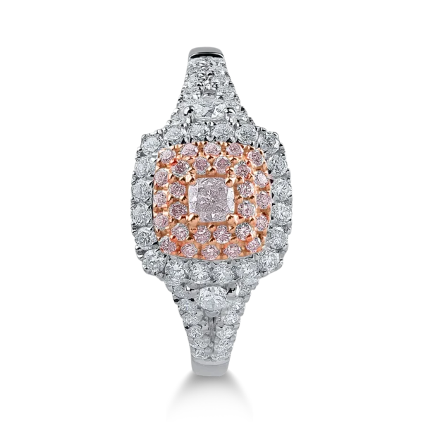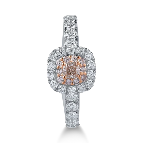 Inel din aur alb-roz cu diamante transparente de 0.51ct si diamante roz cushion si rotunde de 0.23ct