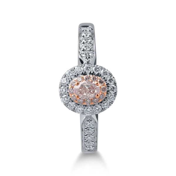 Inel din aur alb-roz cu diamante transparente de 0.34ct si diamante roz ovale si rotunde de 0.21ct