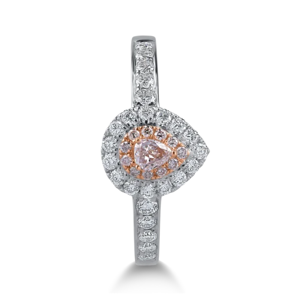 Inel din aur alb-roz cu diamante transparente de 0.35ct si diamante roz pear si rotunde de 0.16ct