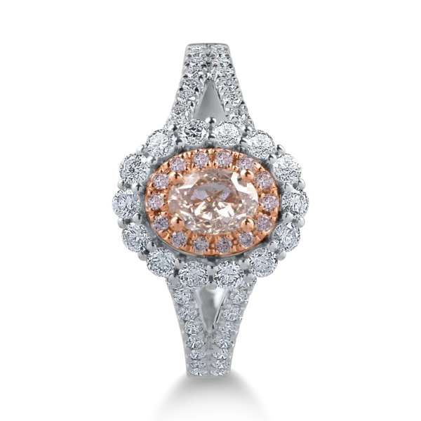 Inel din aur alb-roz cu diamante transparente de 0.76ct si diamante roz ovale si rotunde de 0.36ct