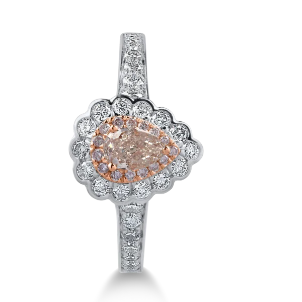 Inel din aur alb-roz cu diamante transparente de 0.5ct si diamante roz pear si rotunde de 0.42ct