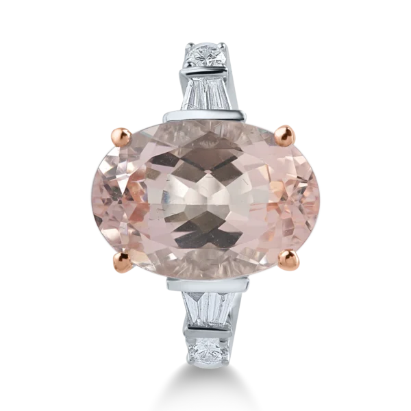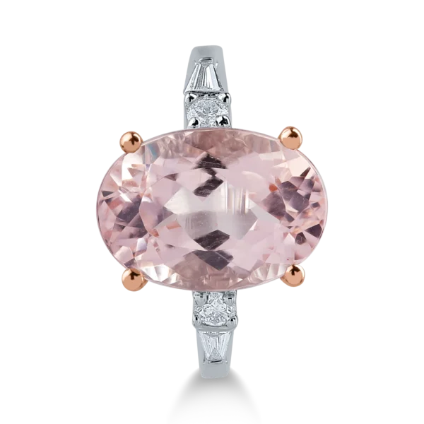 Inel din aur alb-roz cu morganit oval de 5.4ct si diamante de 0.2ct