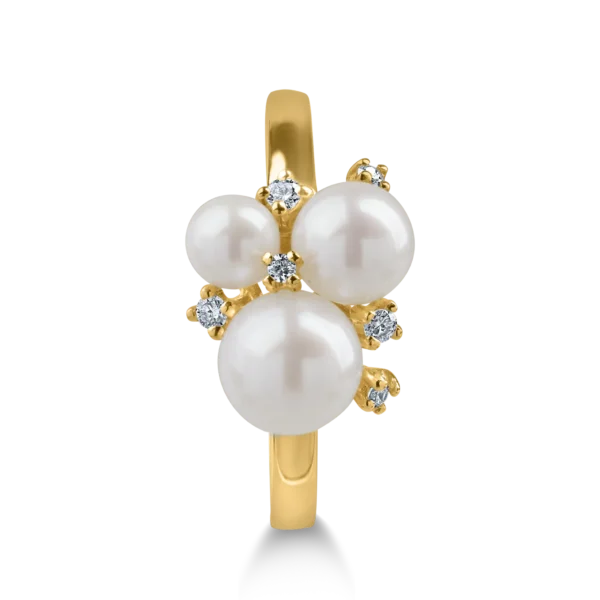 Inel din aur galben cu perle de cultura de 3ct si diamante de 0.07ct