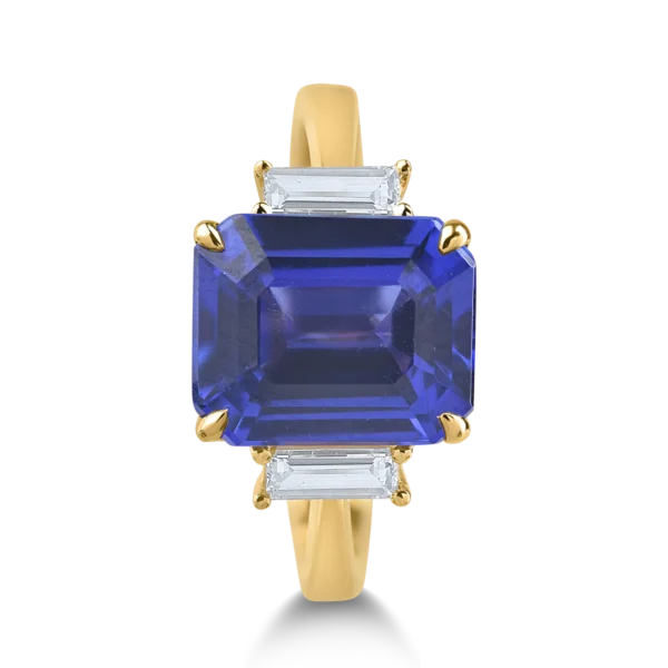 Inel din aur galben cu tanzanit rectangular de 4ct si diamante de 0.3ct