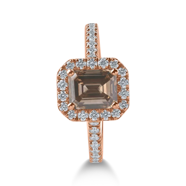 Inel din aur roz cu diamant maro octogonal de 1.5ct si diamante transparente de 0.5ct