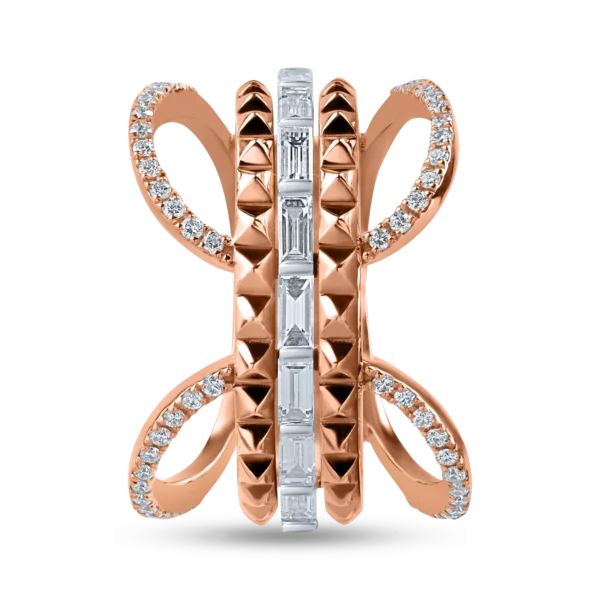 Inel din aur roz cu diamante baguette si rotunde de 1.6ct