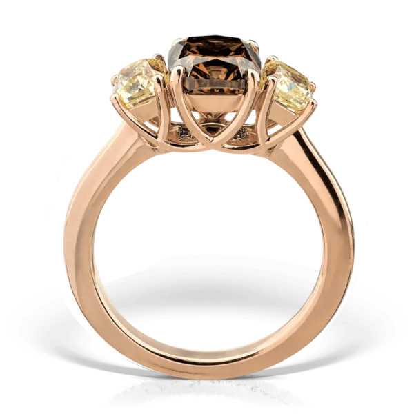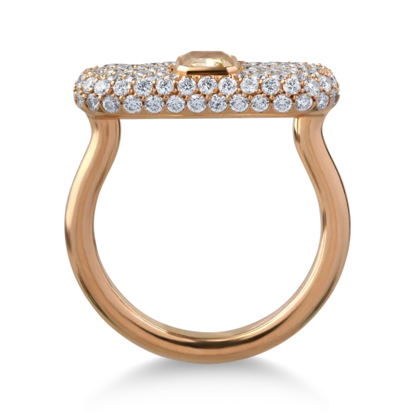 Inel din aur roz cu diamant maro rectangular de 2.62ct si diamante galbene de 1.3ct