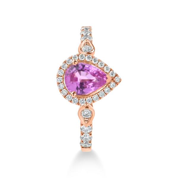 Inel din aur roz cu diamante si safir roz pear de 1.2ct