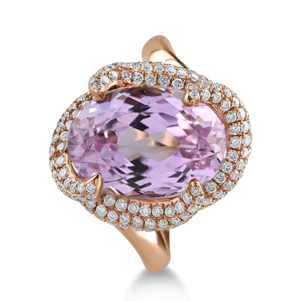 Inel din aur roz cu kunzit oval de 8.8ct si diamante de 1.07ct