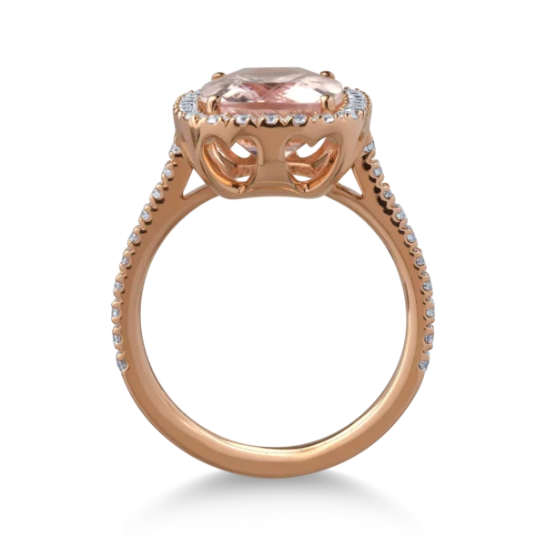 Inel din aur roz cu morganit cushion de 4.3ct si diamante de 0.6ct