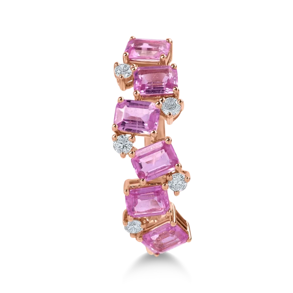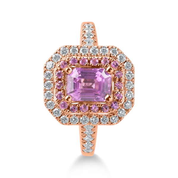 Inel din aur roz cu safire roz octogonale si rotunde de 1.56ct si diamante de 0.44ct