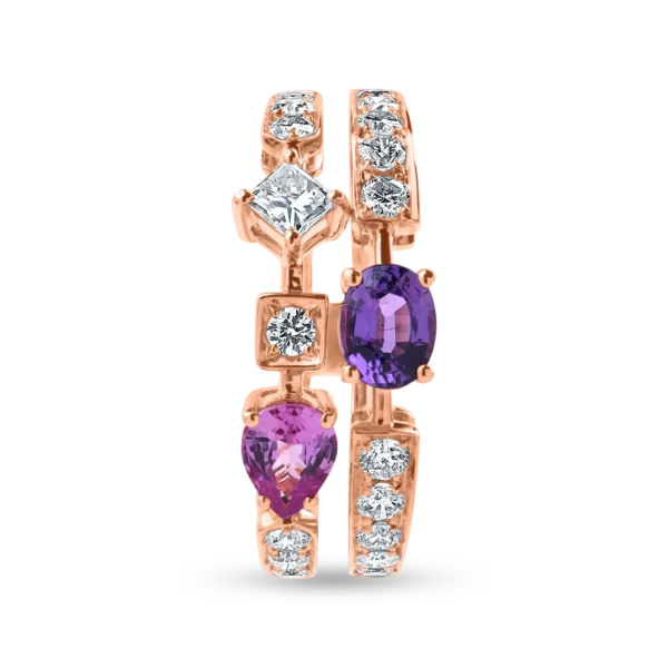 Inel din aur roz cu safire pear si ovale si diamante princess si rotunde de 1.4ct
