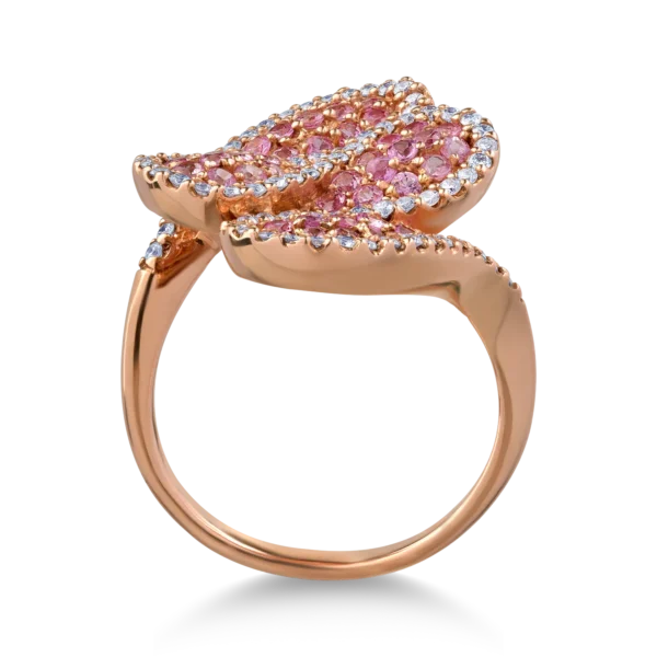 Inel din aur roz cu safire roz de 1.3ct si diamante de 0.5ct