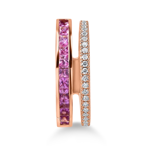 Inel din aur roz cu safire roz princess de 0.7ct si diamante de 0.16ct