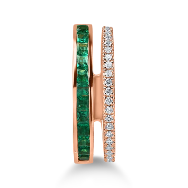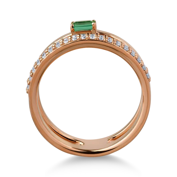 Inel din aur roz cu smarald baguette de 0.2ct si diamante de 0.3ct