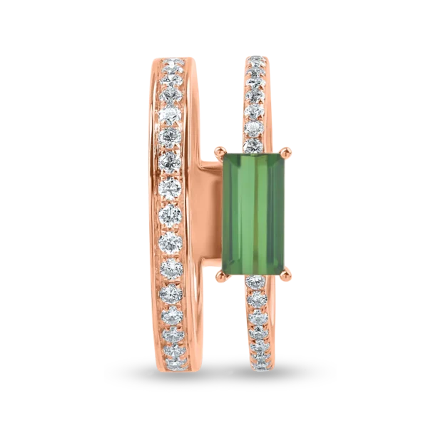 Inel din aur roz cu turmalina verde rectangulara de 0.9ct si diamante de 0.3ct