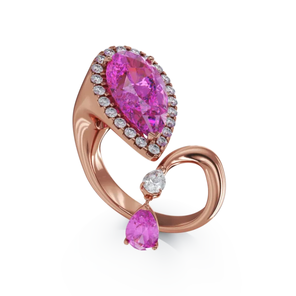 Inel din aur roz cu safire roz pear de 4.33ct si diamante pear si rotunde de 0.47ct