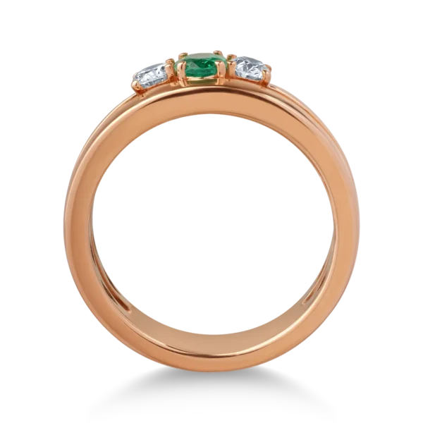 Inel din aur roz cu smarald oval de 0.2ct si diamante de 0.3ct
