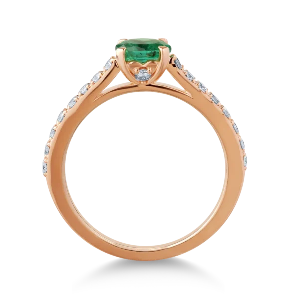 Inel din aur roz cu smarald oval de 0.5ct si diamante de 0.3ct