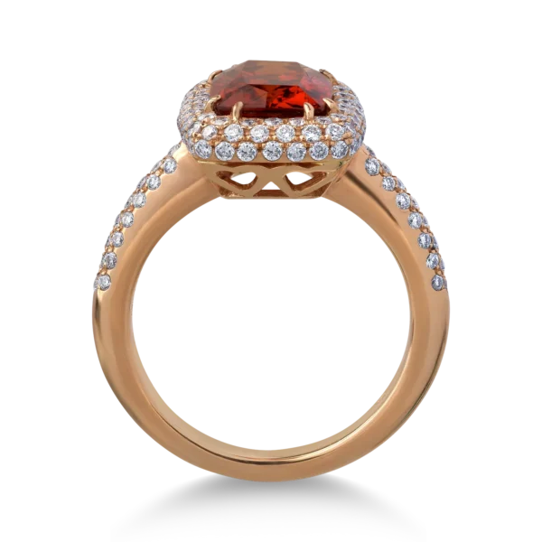 Inel din aur roz cu spessartit rectangular de 4.2ct si diamante de 0.8ct