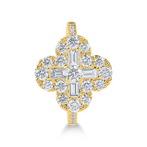 Inel floare din aur galben cu diamante baguette si rotunde de 1.3ct