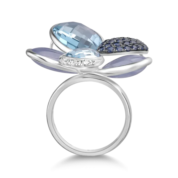 Inel floare din aur alb cu pietre pretioase si semipretioase de 25.9ct