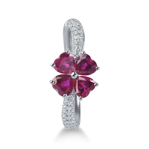 Inel floare din aur alb cu rubine heart si diamante de 1.5ct