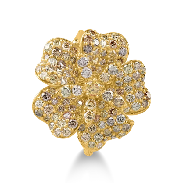 Inel floare din aur galben cu diamante multicolore de 1.57ct