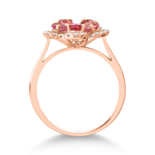 Inel floare din aur roz cu turmaline roz pear de 1ct si diamante de 0.1ct