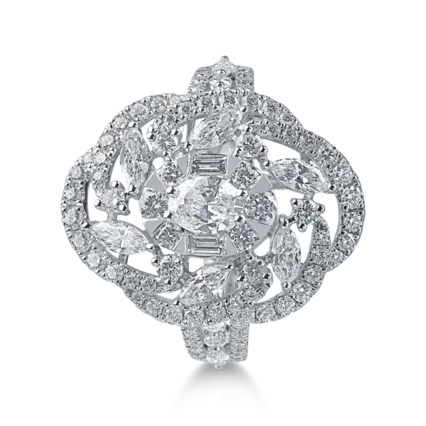 Inel floral din aur alb cu diamante marquise de 2.19ct
