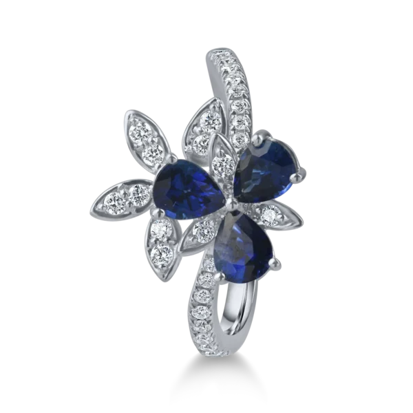 Inel floral din aur alb cu safire pear si diamante de 1.3ct
