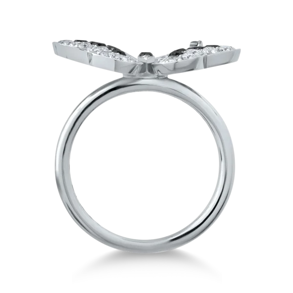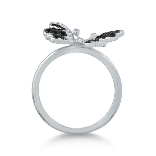 Inel fluture din aur alb cu diamante negre de 0.33ct si diamante transparente de 0.25ct