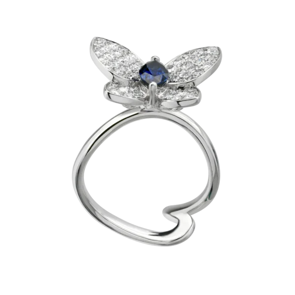 Inel fluture din aur alb cu safir pear de 0.9ct si diamante de 0.8ct