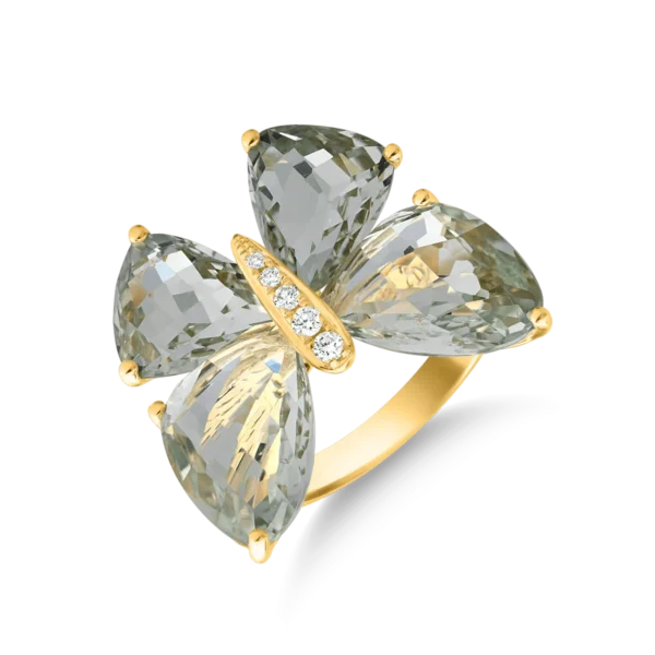 Inel fluture din aur galben cu ametiste verzi de 11.5ct si diamante de 0.38ct