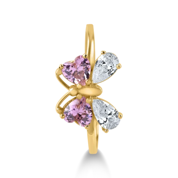 Inel fluture din aur roz cu cuartz trandafiriu de 13.4ct si diamante de 0.07ct