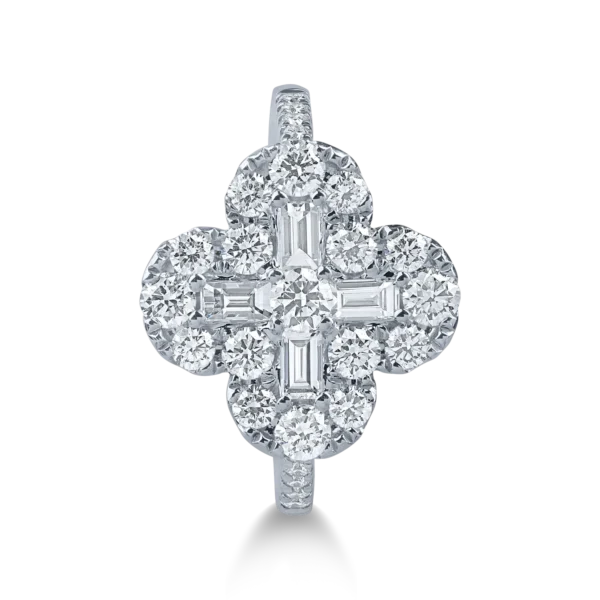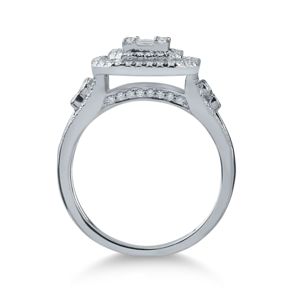Inel geometric din aur alb cu diamante baguette si rotunde de 0.7ct