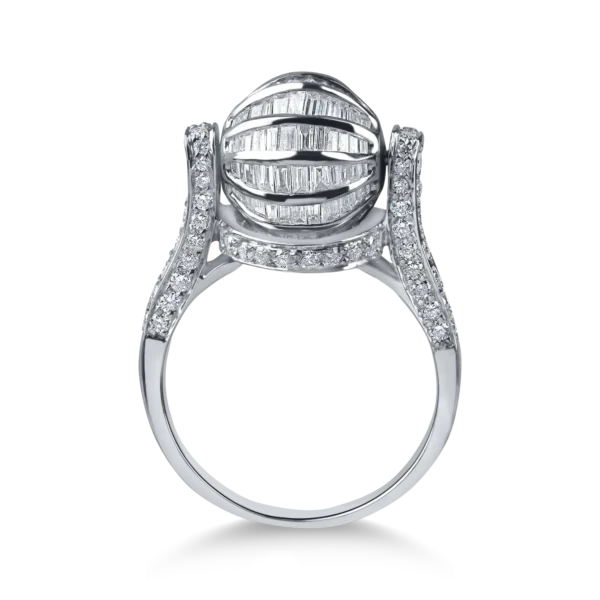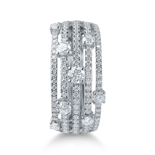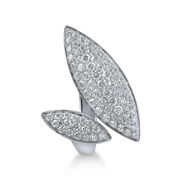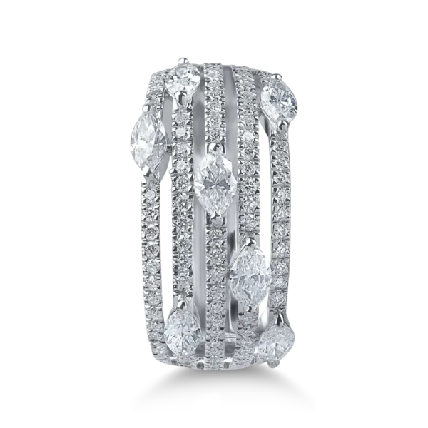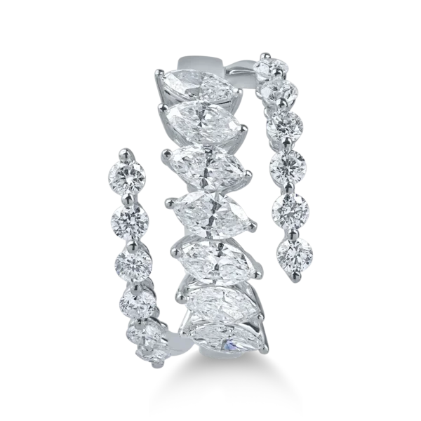 Inel geometric din aur alb cu diamante marquise si rotunde de 2.12ct