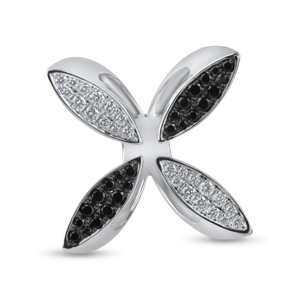 Inel geometric din aur alb cu diamante incolore si negre de 0.3ct