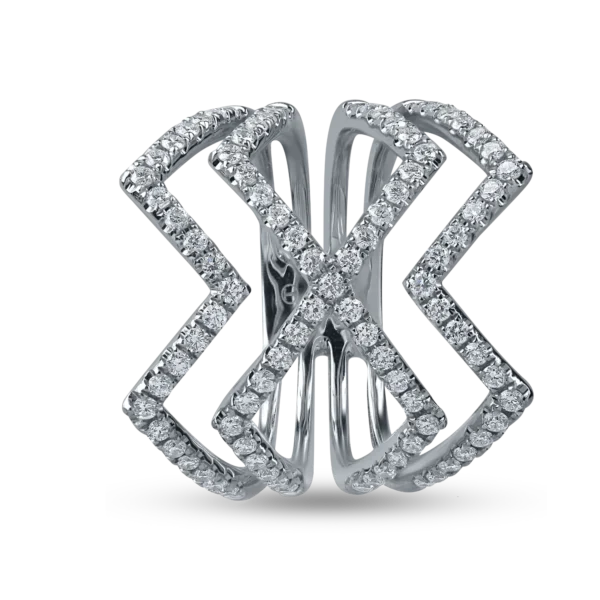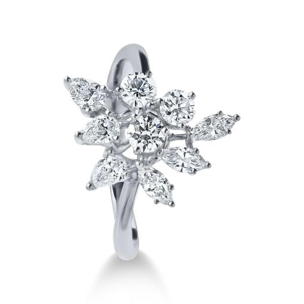 Inel geometric din aur alb cu diamante marquise si rotunde de 1.2ct
