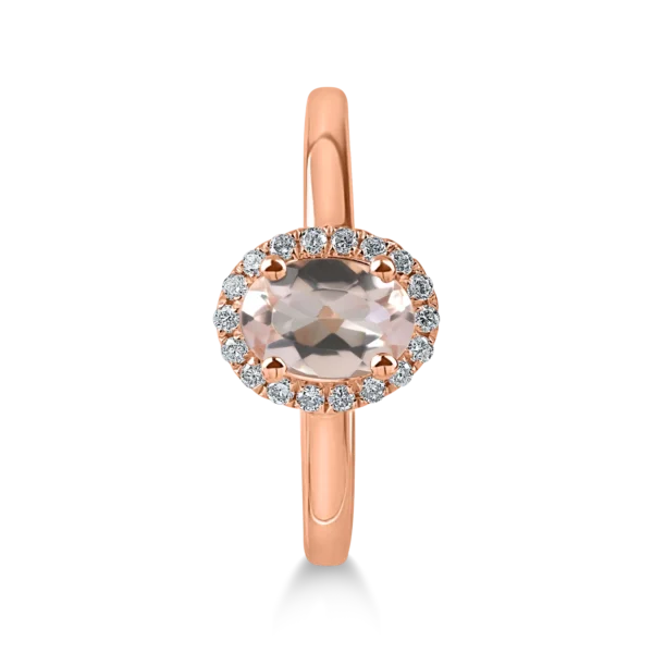 Inel geometric din aur roz cu morganit oval de 0.7ct si diamante de 0.1ct